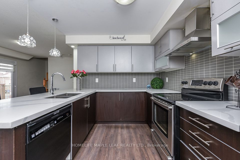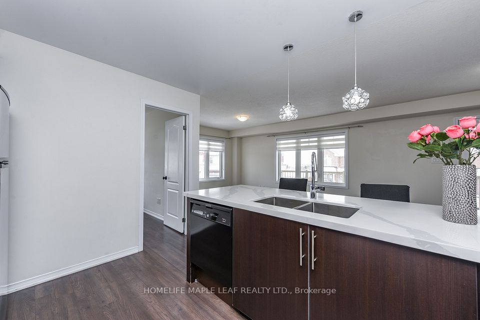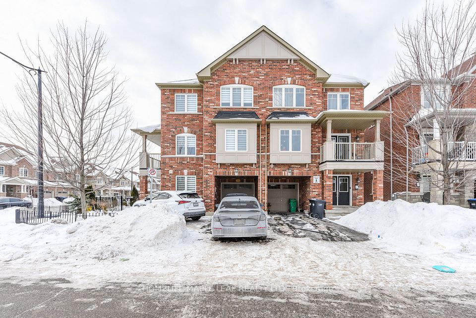 Welcome to FREEHOLD ,3 storey freehold elegant townhouse on a Corner lot ,offering a feel of Semi-Detached home , modern built by "Empire builder , boosting Great landscaped garden area with roses,trees,bushes and grassy ground surrounded with wrought iron fence and gate. Balcony on ground floor attached to double door main entry. 4 bedrooms + Den with Hardwood flooring throughout the house & access to garage from inside the building.One bedroom on ground floor with 3pc washroom ,great for seniors living or office.Additional highlights include,full size kitchen combined with dining & living area with another balcony on second floor with access through door,place to enjoy gathering with street view. Great location, conveniently located with 4 parkings & close to all major amenities grocery store,Hwy, Tim horton , gas station,walking distance to school and public transit .A rare opportunity to own a corner unit ,No sidewalk with no worries of snow cleaning.....that perfectly blends style,functionality and value.